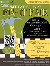 YOU MUST register online to ensure a volunteer will be able to fix your item: https://portercountyrecycling.org/fix-it-fairs/