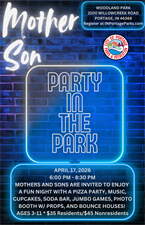 MOTHERS AND SONS ARE INVITED TO ENJOY FUN NIGHT WITH A PIZZA PARTY, MOVIE, CUPCAKES, SODA BAR, JUMBO GAMES, PHOTO BOOTH W/ PROPS, AND BOUNCE HOUSES!